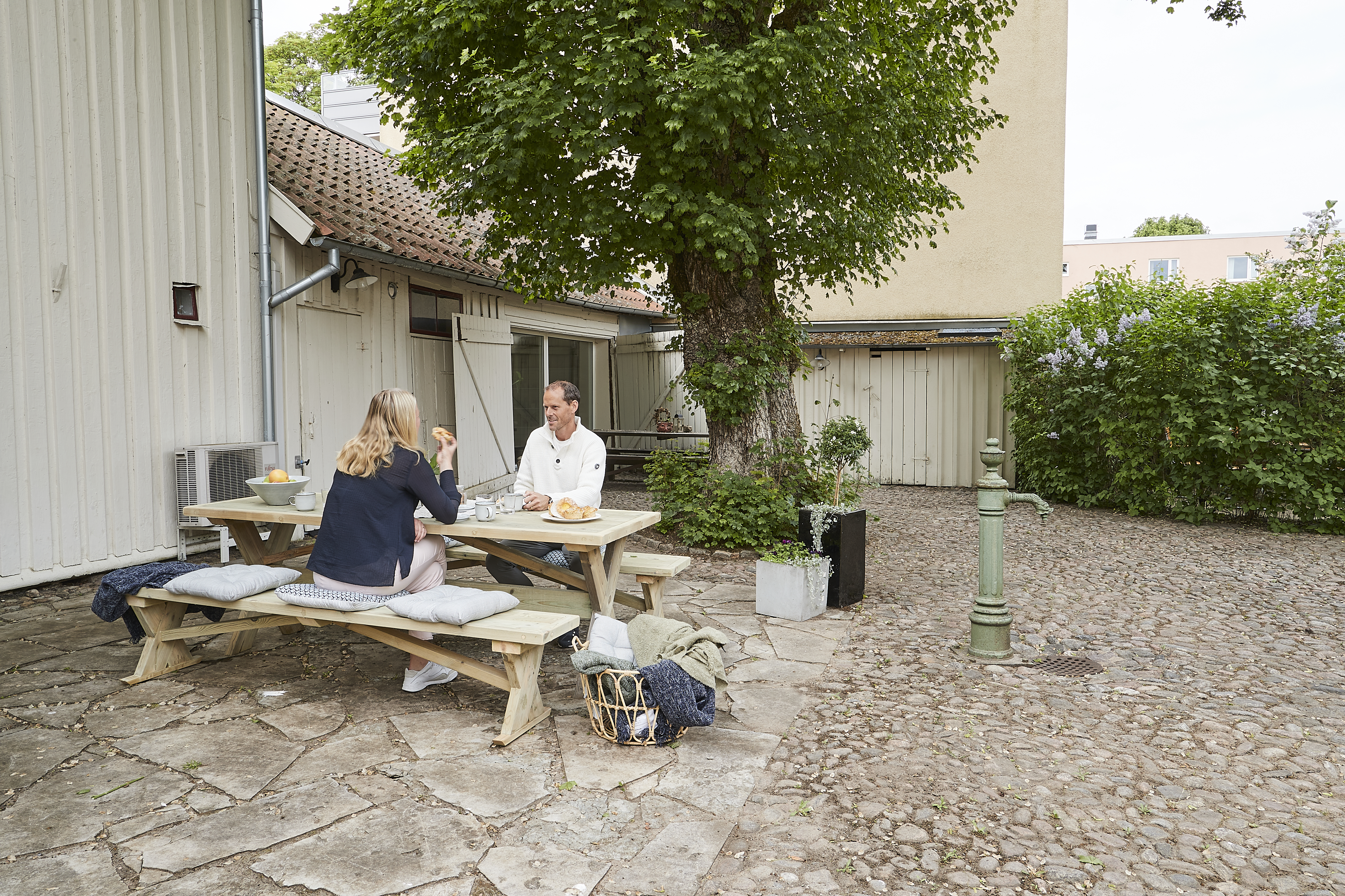 Mellan intensiva arbetspass och möten kan det vara behagligt att slå sig ner på den privata rogivande innergården över en kaffe, lunch eller arbete utomhus.